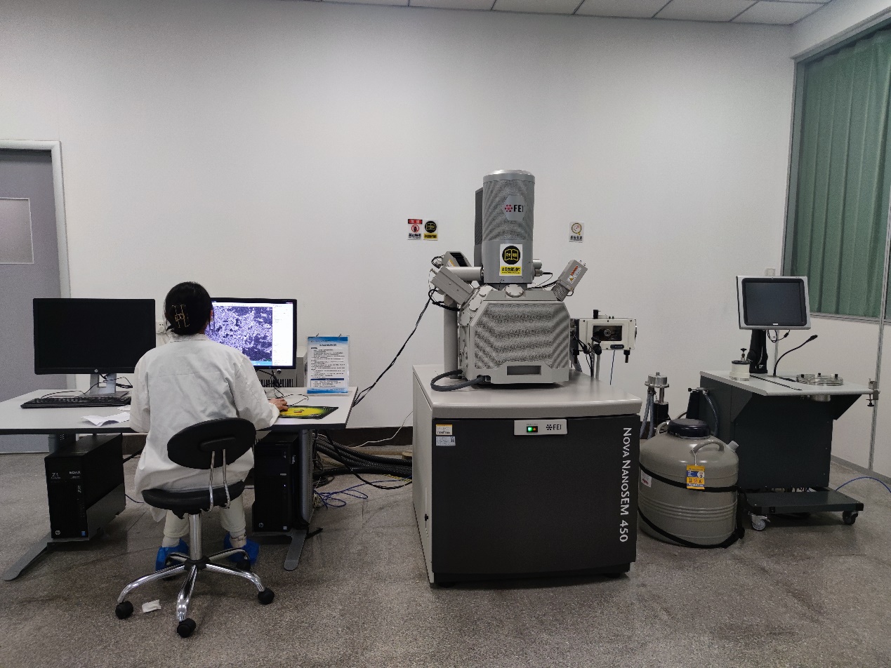 生命平台有美国FEI公司,型号Nano SEM-450和日立SU8600扫描电镜,主要作为细胞生物学,材料科学的研究工具,利用二次电子信号、背散射电子成像来观察样品的表面形态。与能谱仪联用能够进行元素分析;外接冷冻传输系统在真空及低温条件下实现生物、材料、食品、地质等含水样品的冷冻制备(冷冻断裂、升华刻蚀、溅射镀膜)、样品传输、电镜低温观察。